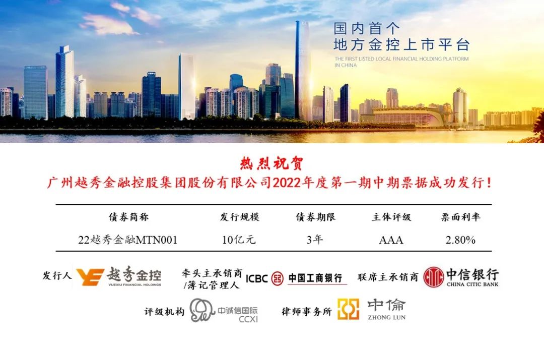 热烈祝贺广州越秀金融控股集团股份有限公司2022年度第一期中期票据成功发行!