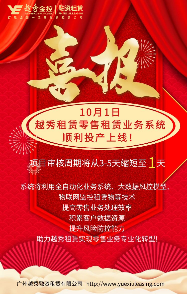 越秀租赁零售租赁业务系统(一期)顺利投产上线